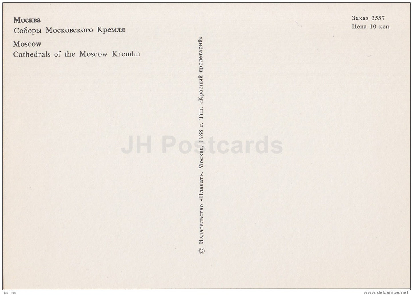 Cathedrals of Moscow Kremlin - Moscow - 1988 - Russia USSR - unused
