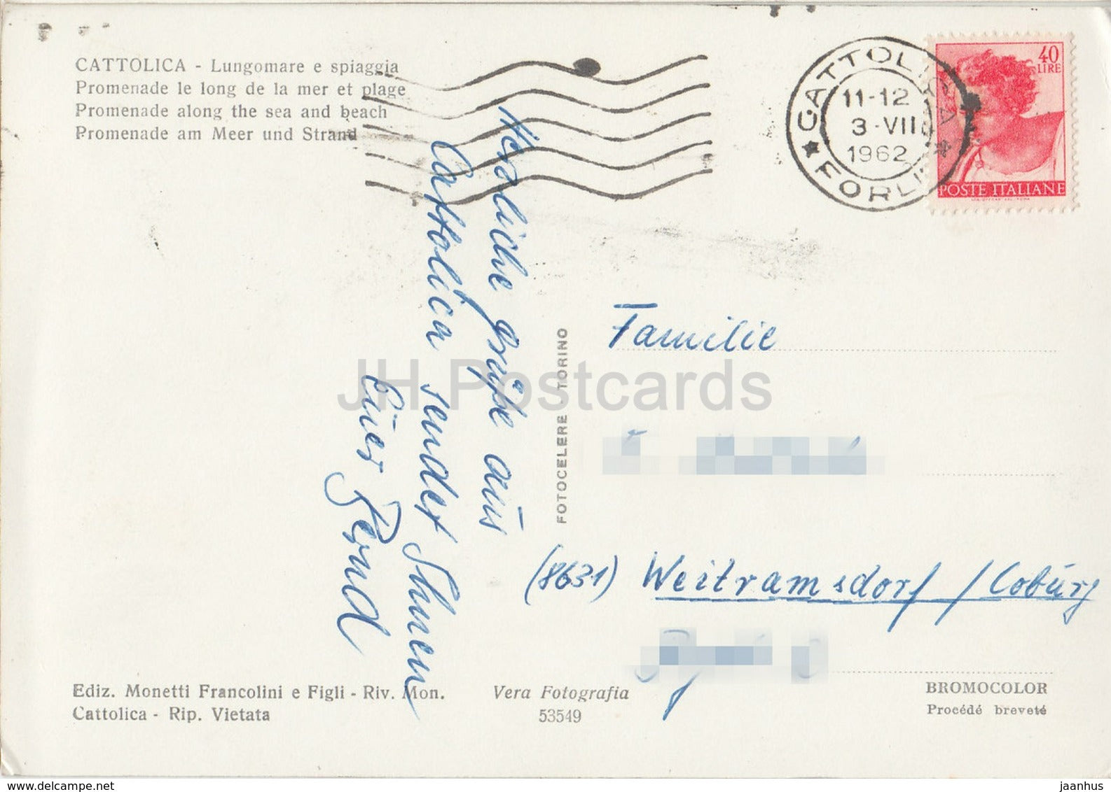 Cattolica - Lungomare e Spiaggia - Promenade along the sea and beach - Italy - 1962 - used