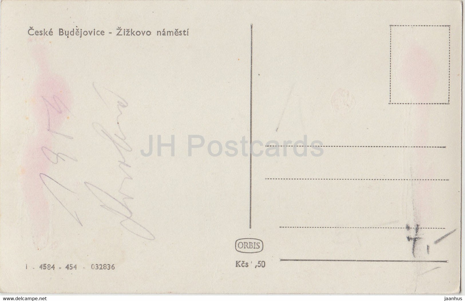 Ceske Budejovice - Zizkovo namesti - old postcard - Czechoslovakia - Czech Republic - used