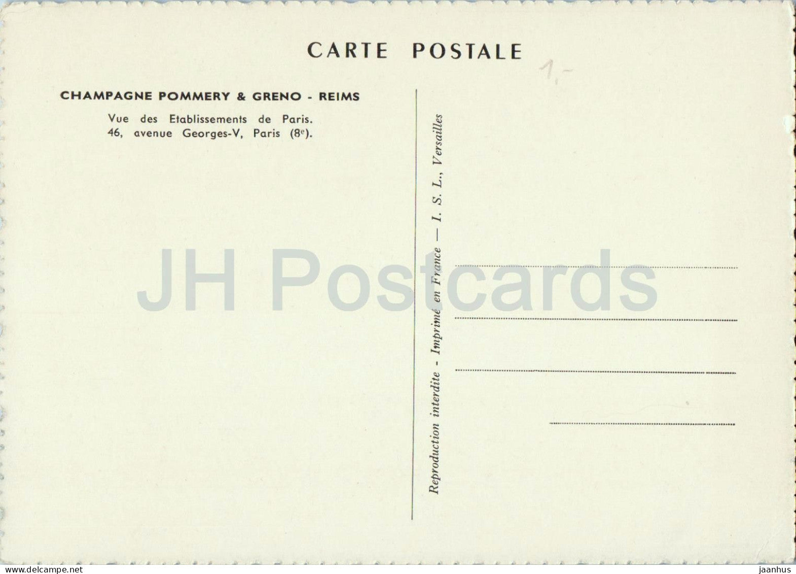 Champagne Pommery & Greno - Vue des Etablissements de Paris - postcard - 1930s - France - unused