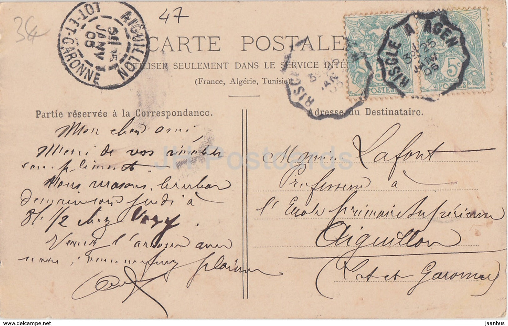 Chateau de Cazal du Bos - Nerac - castle - 44 - old postcard - 1905 - France - used