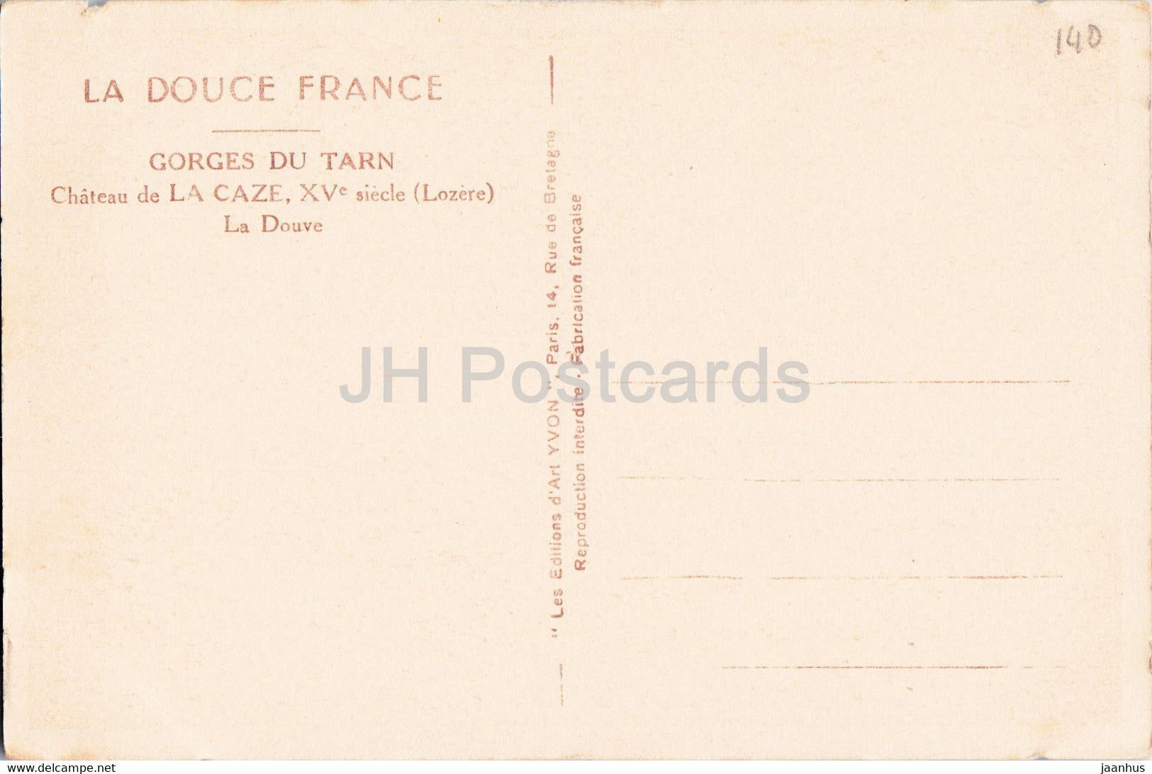 Chateau de la Caze - La Douve - Gorges du Tarn - castle - old postcard - France - unused