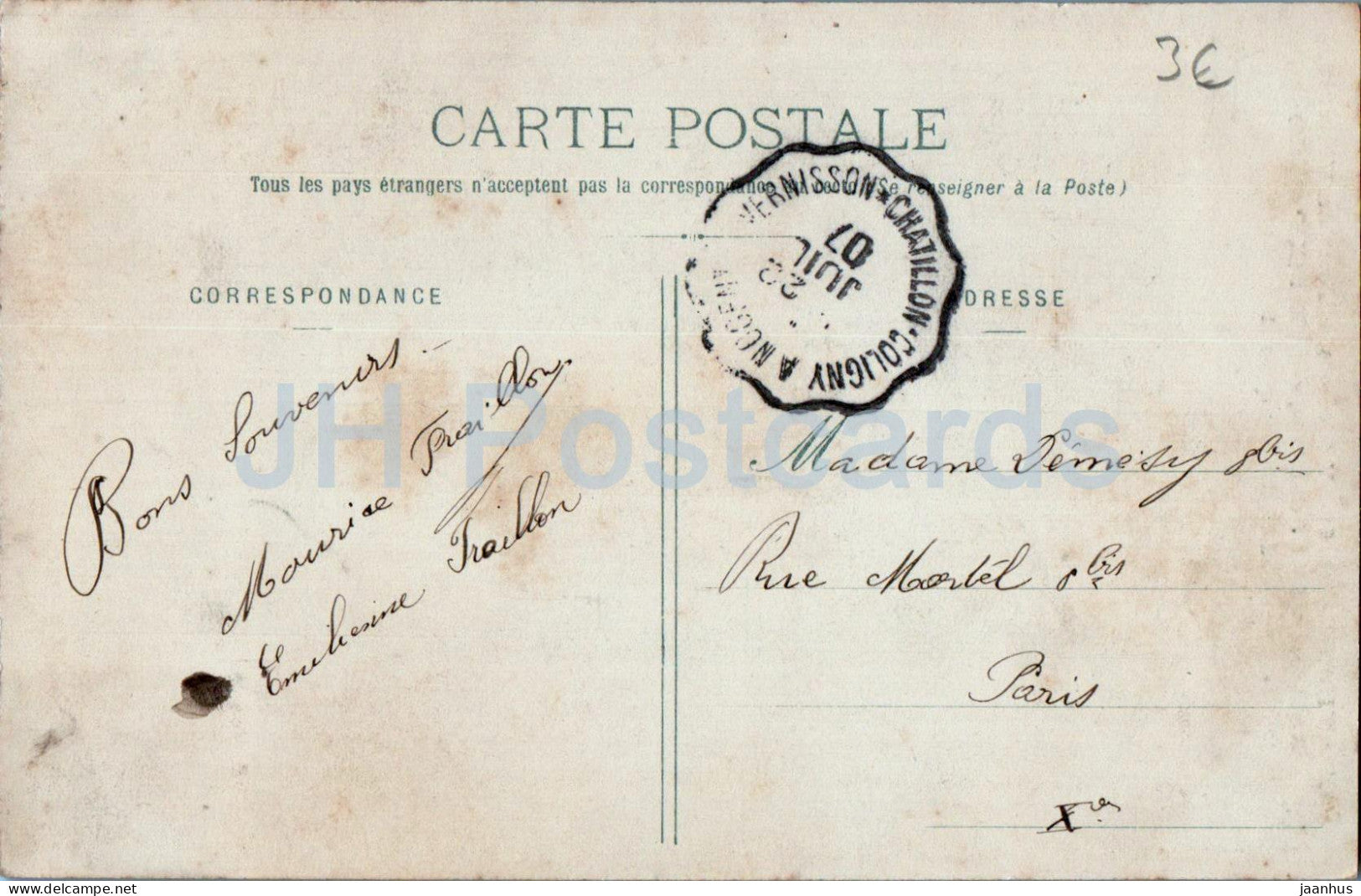 Chatillon Coligny - Tour du Vauvert - Anciennes fortifications - Jardin Becquerel - old postcard - 1907 - France - used