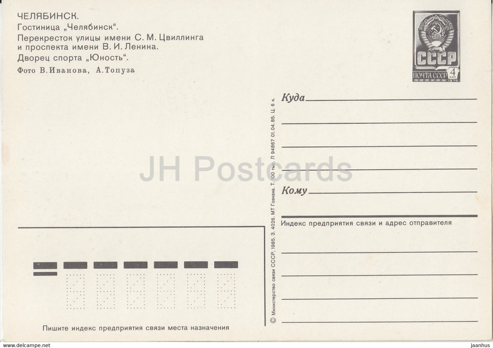 Chelyabinsk - hotel - Sports Palace Yunost - bus Ikarus - postal stationery - 1985 - Russia USSR - unused