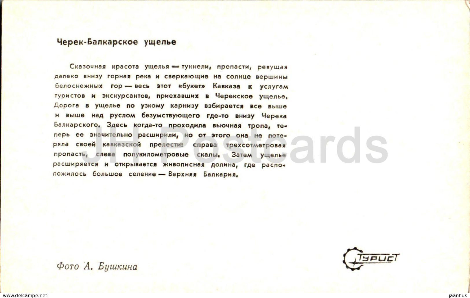 Cherek-Balkar gorge - Kabardino-Balkaria - Turist - 1973 - Russia USSR - unused