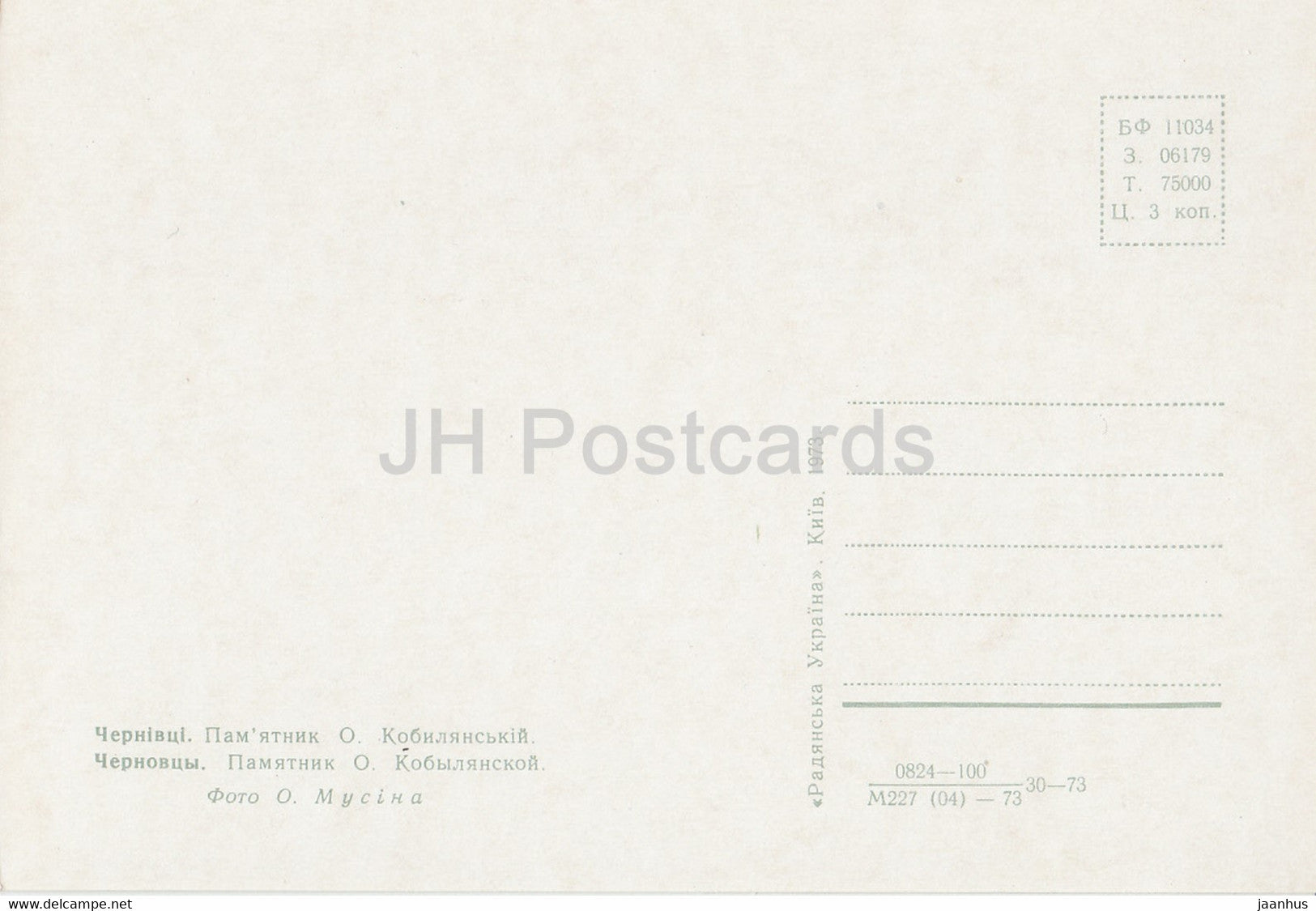 Chernivtsi - monument to Kobylianska - 1973 - Ukraine USSR - unused
