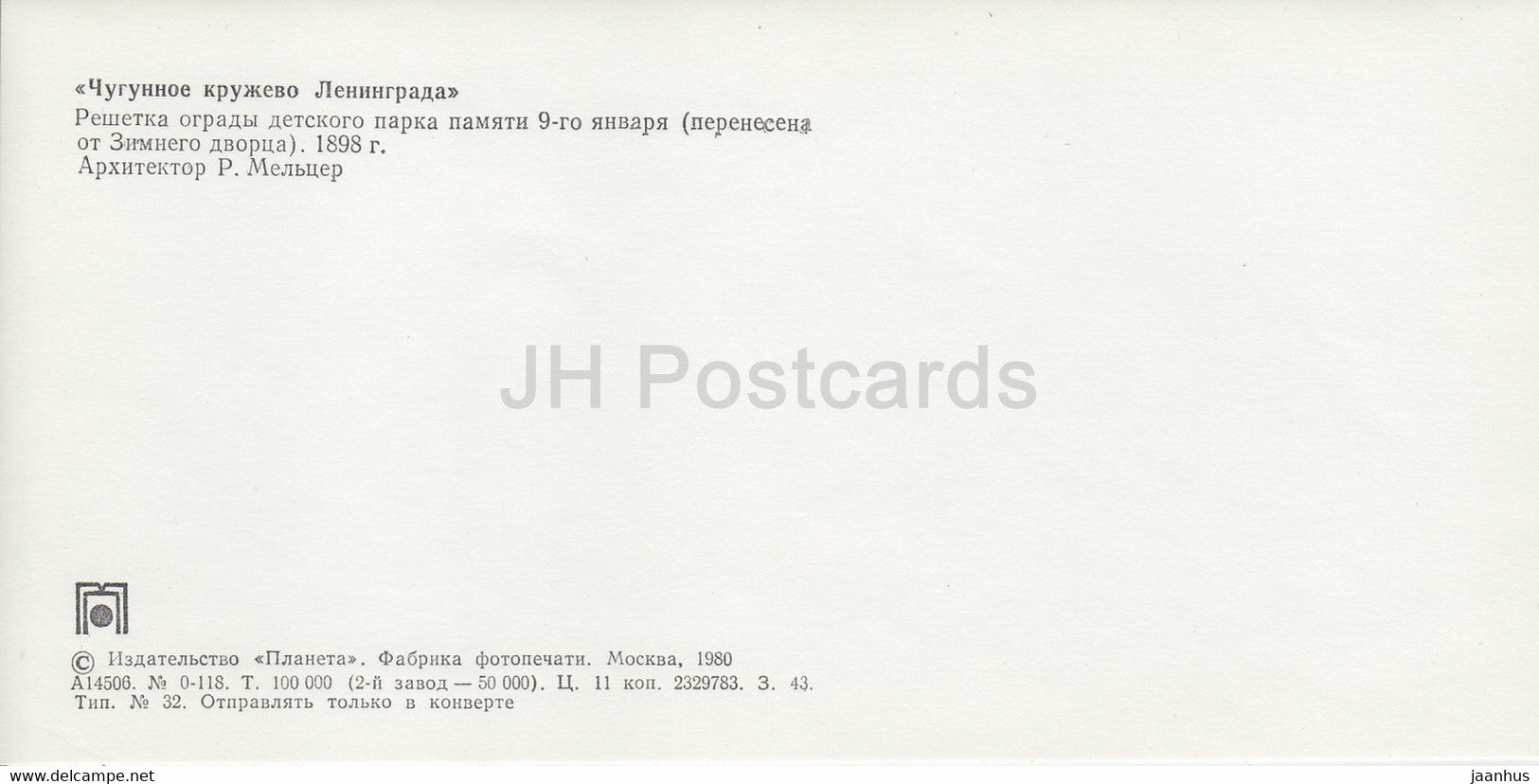 children's park fence - St Petersburg - Cast Iron Lace of Leningrad - 1980 - Russia USSR - unused