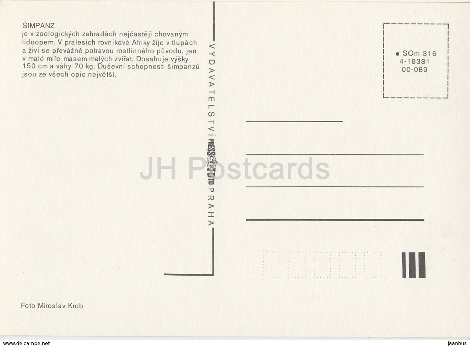 Chimpanzee - monkey - Zoo - Czechoslovakia - Czech Republic - unused