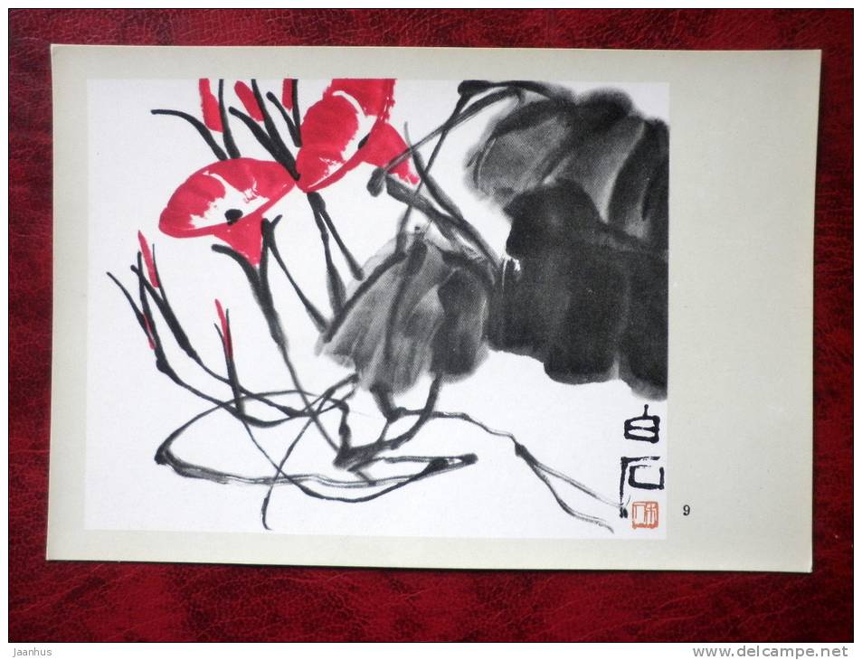 Chinese art - painting by Chi Pai Shih - Ipomoea - flowers - printed on thin paper - Russia - USSR - unused