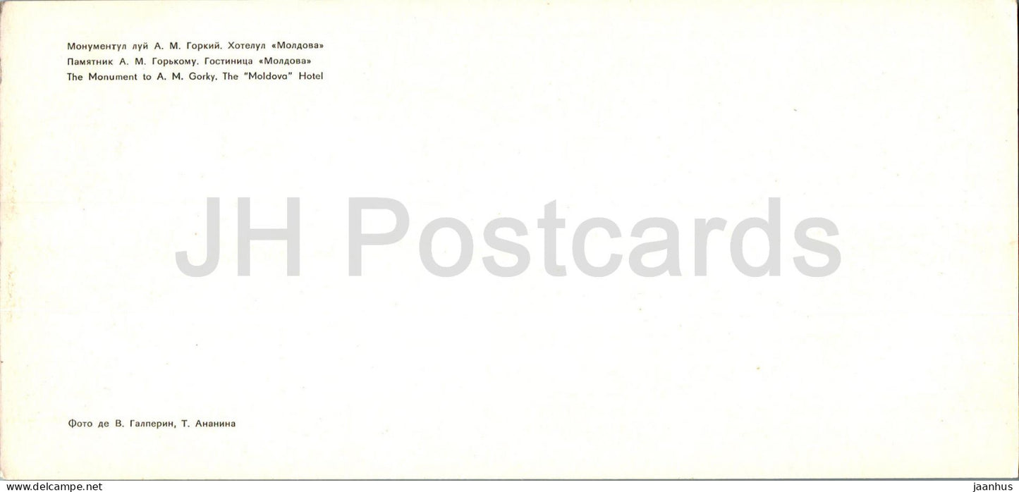 Chisinau - monument to Russian writer Gorky - hotel Moldova - 1980 - Moldova USSR - unused