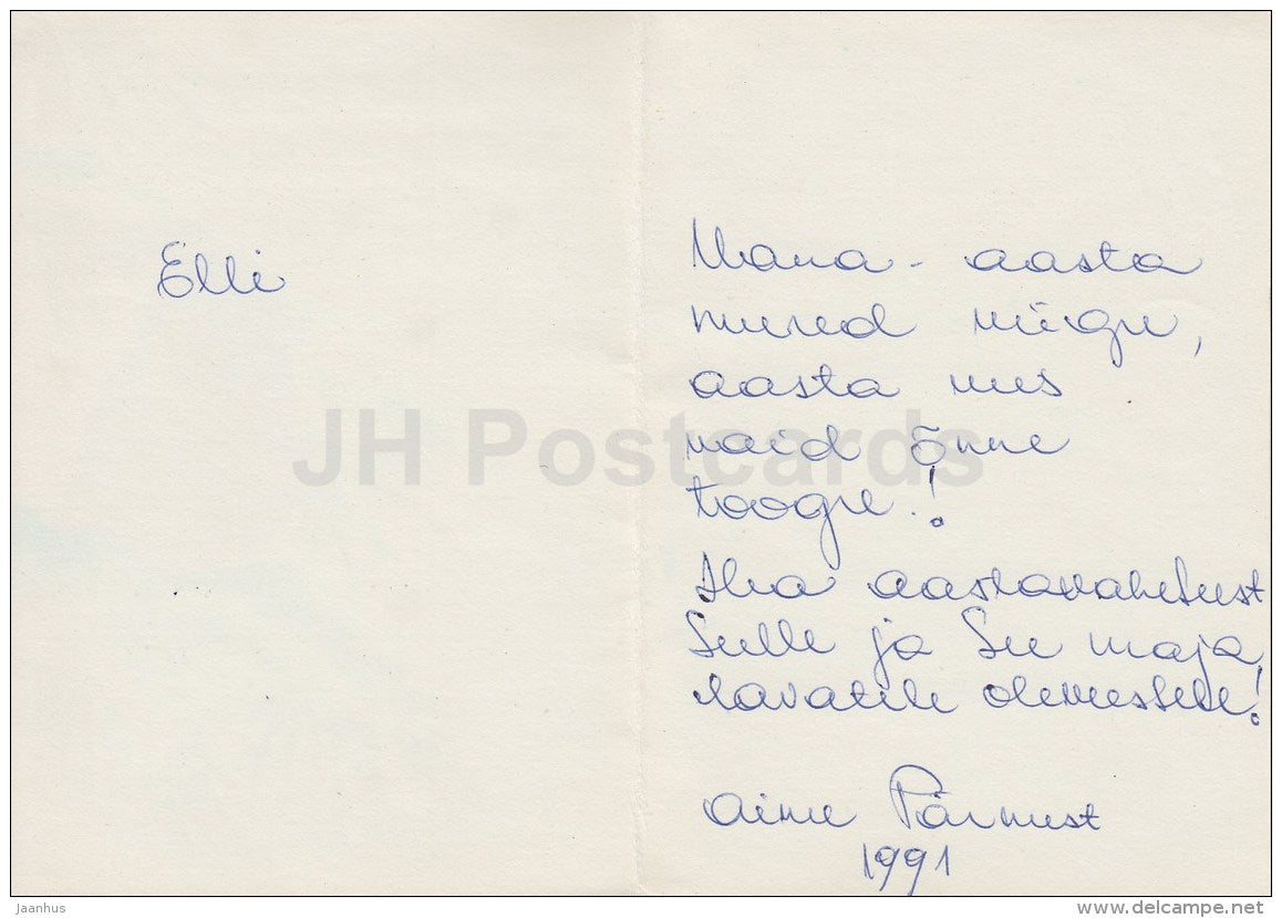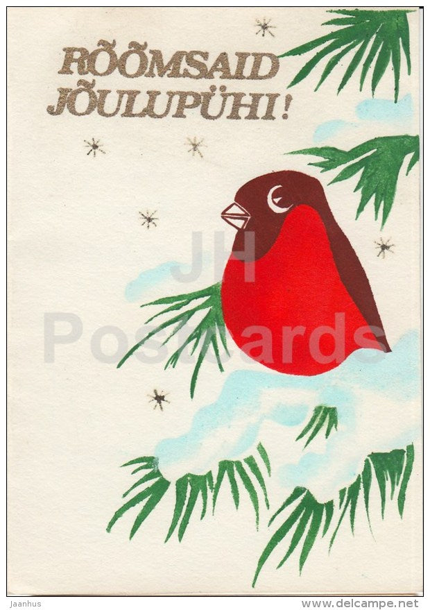 Christmas greeting card - Bullfinch - bird - illustration - 1991 - Estonia - used