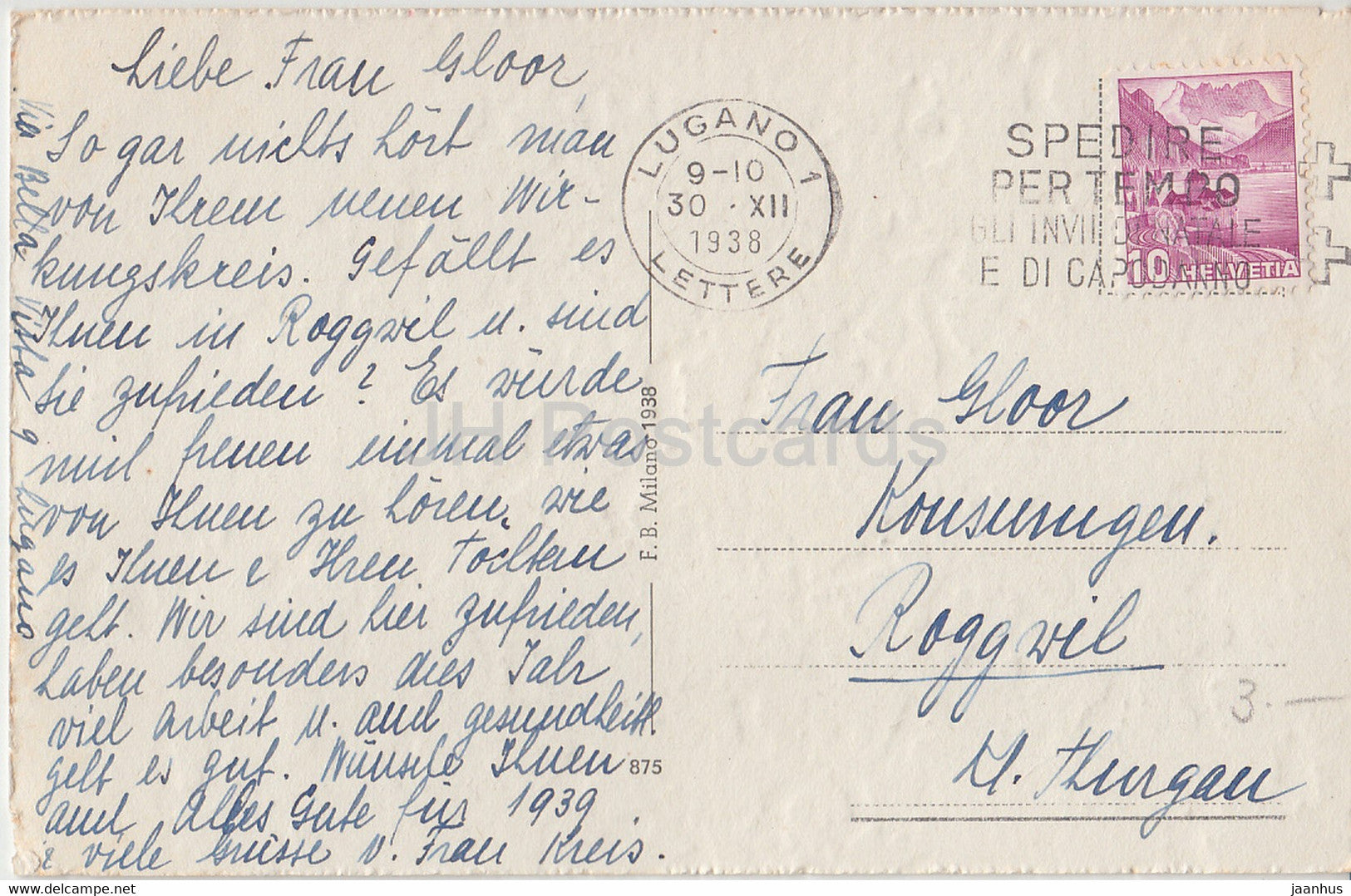 Christmas Greeting Card - Buon Natale - children - winter - silhouette - FB 875 - old postcard - 1938 - Italy - used