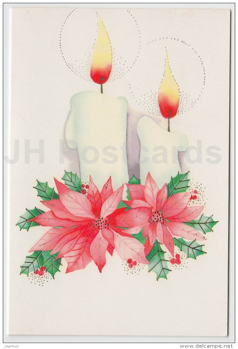 Christmas Greeting Card by L. Laater - candles - flowers - illustration - Estonia - used in 2003