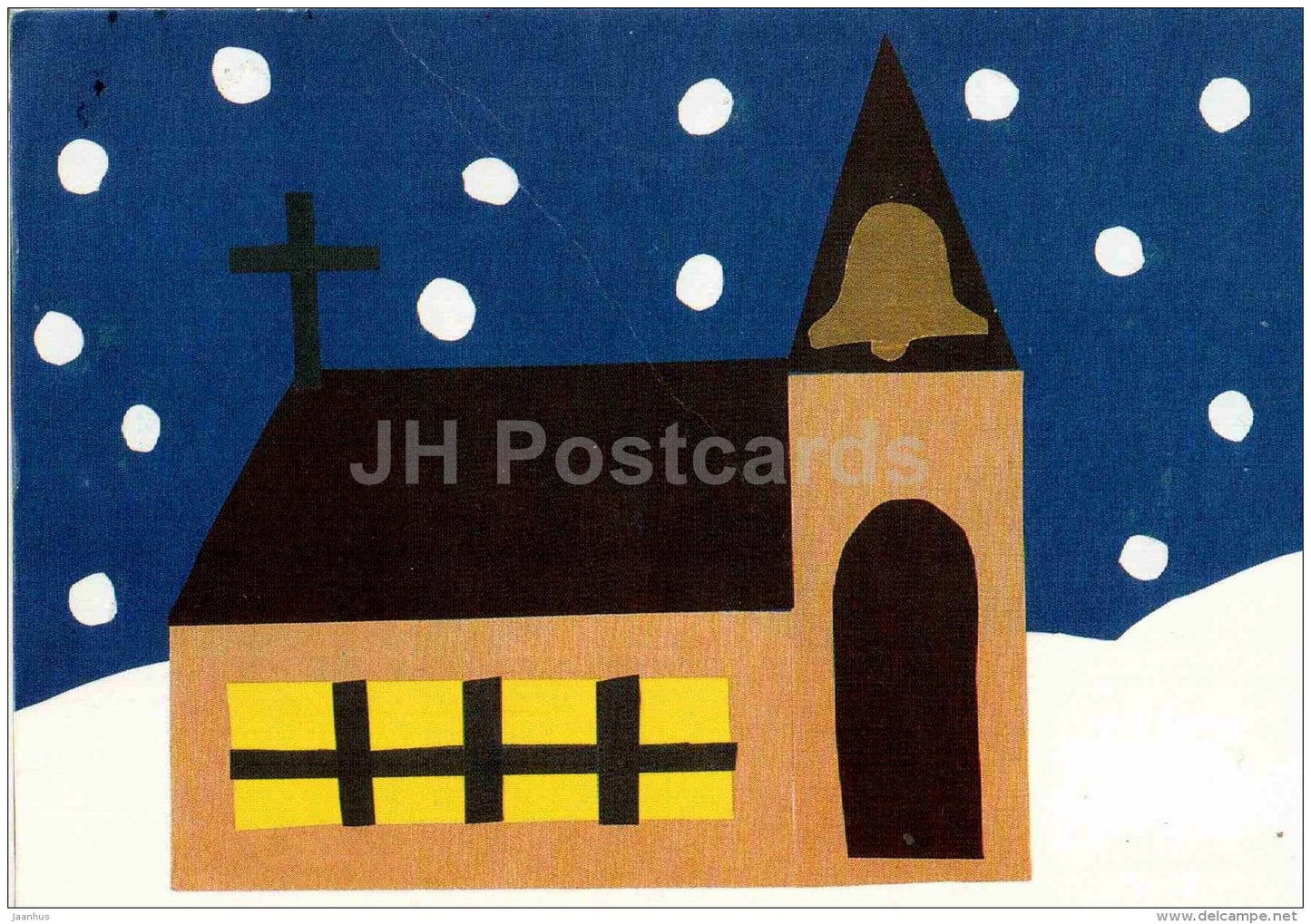 Christmas greeting card - church illustration - Mallard stamp - Finland - circulated in 1993