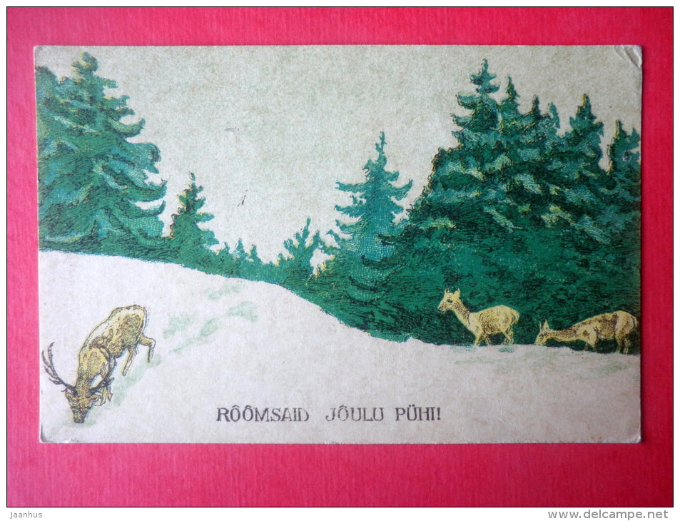 christmas greeting card - deer - forest - 105 - circulated in Estonia Tallinn 1920