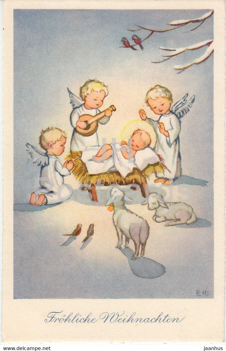 Christmas Greeting Card - Frohliche Weihnachten - angels - old postcard - 1950 - Germany - used