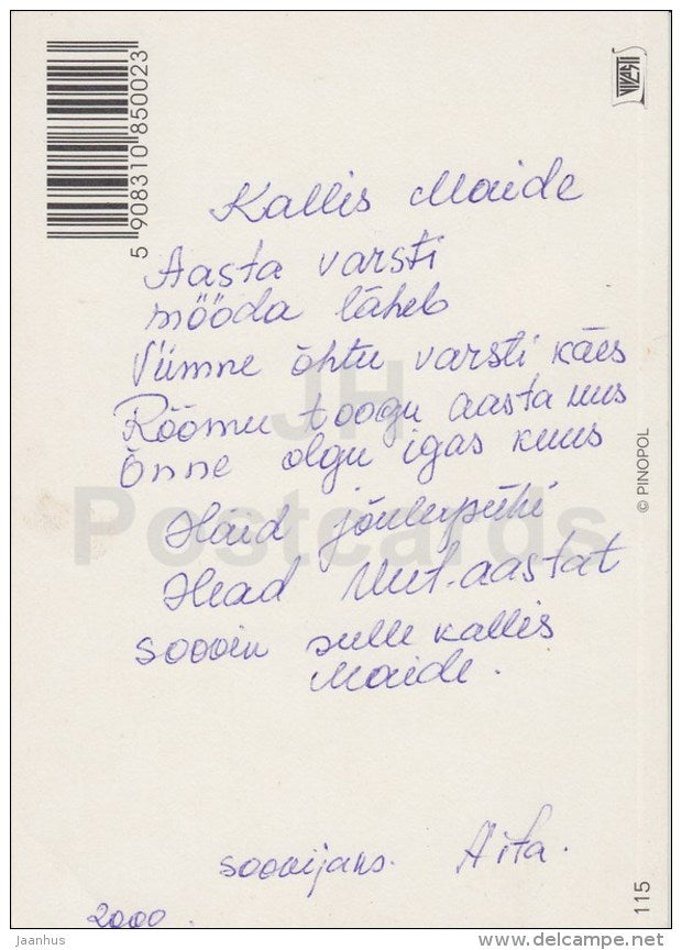 Christmas greeting card - illustration - winter - town - Estonia - used