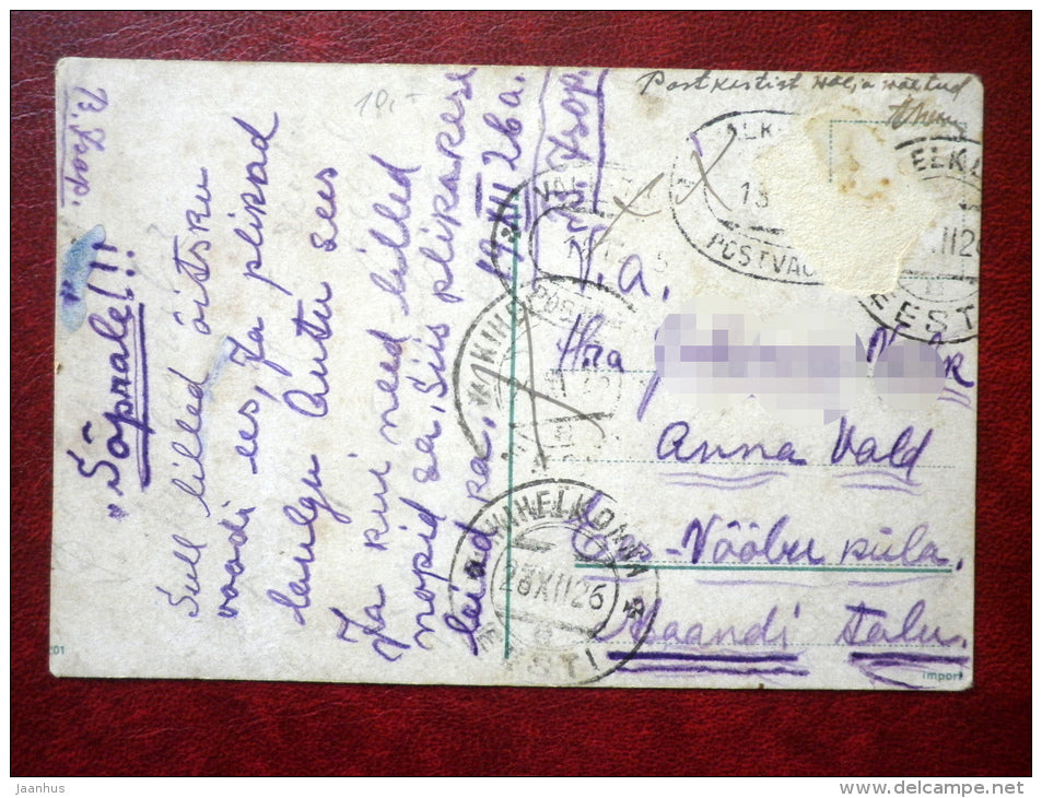 Christmas Greeting Card - old car - young women - circulated in 1926 - Estonia - used