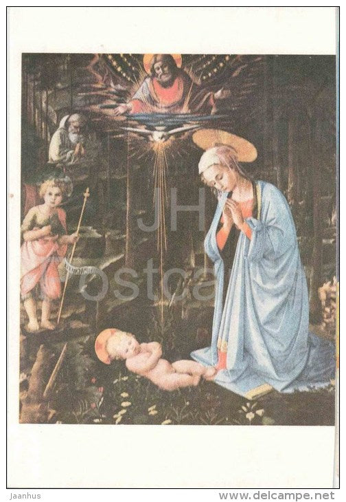 Christmas Greeting card - painting by Filippo Lippi - italian art - 1989 - Estonia USSR - used