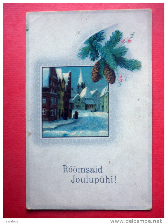 christmas greeting card - town - cones - circulated in Estonia 1919