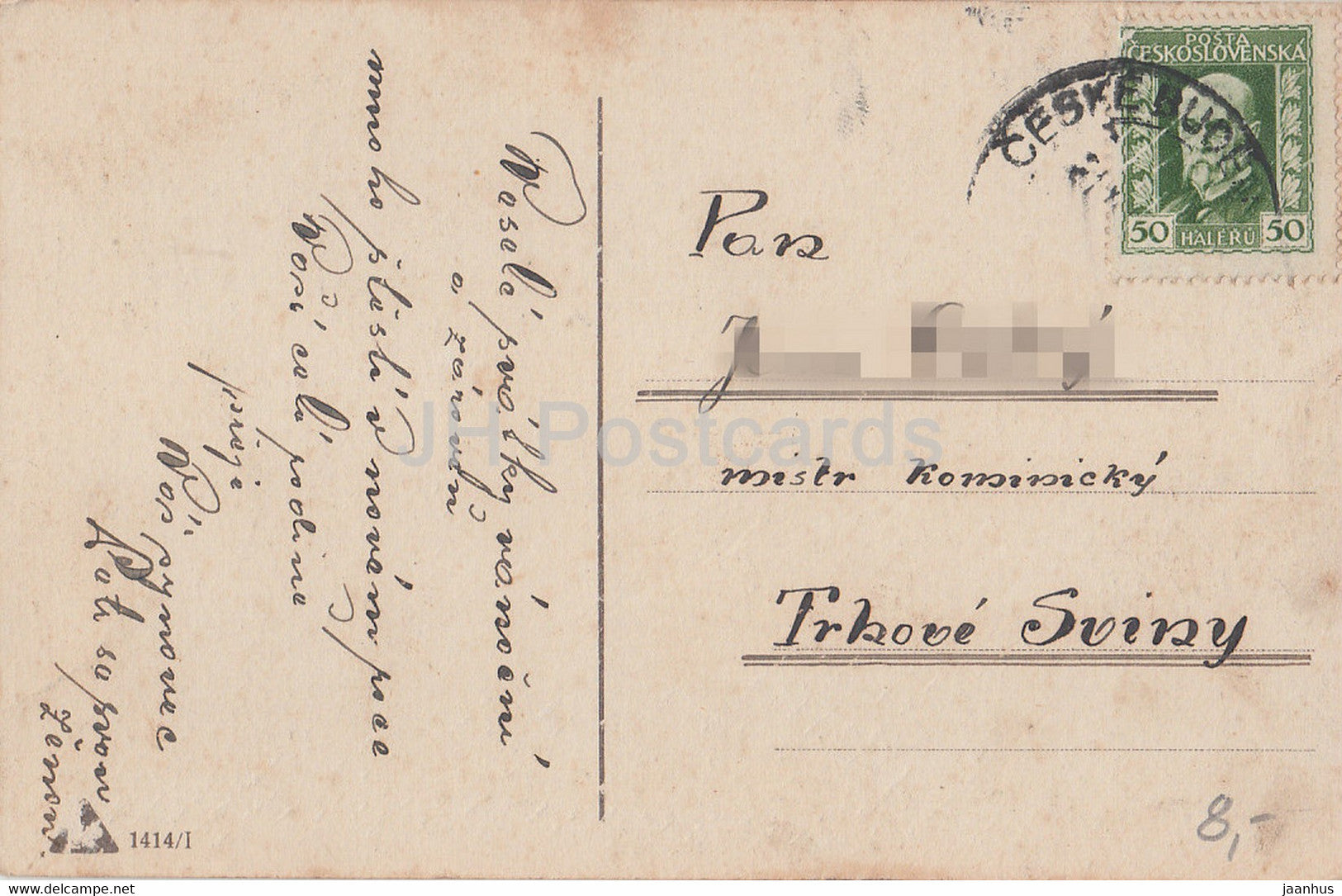 Christmas Greeting Card - Vesele vanoce - horse carriage - illustration - 1414 - old postcard - Czech Republic - used