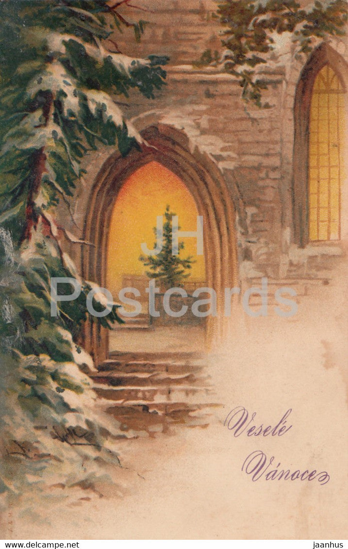 Christmas Greeting Card - Vesele vanoce - illustration - old postcard - Czech Republic - used