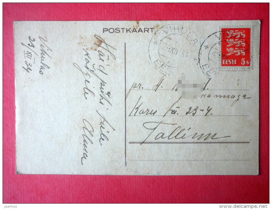 christmas greeting card - winter - forest - sun - circulated in Estonia Vihula 1934