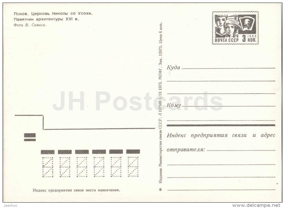 Church of St. Nicholas with Usoh - Pskov - postal stationery - 1973 - Russia USSR - unused