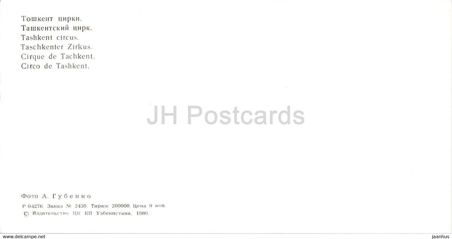 Circus - 1 - Tashkent - Toshkent - 1980 - Uzbekistan USSR - unused