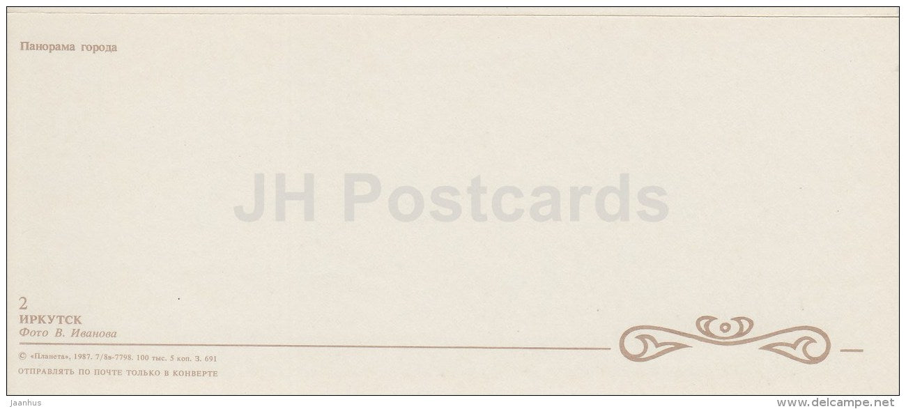 City Panorama - Irkutsk - 1987 - Russia USSR - unused