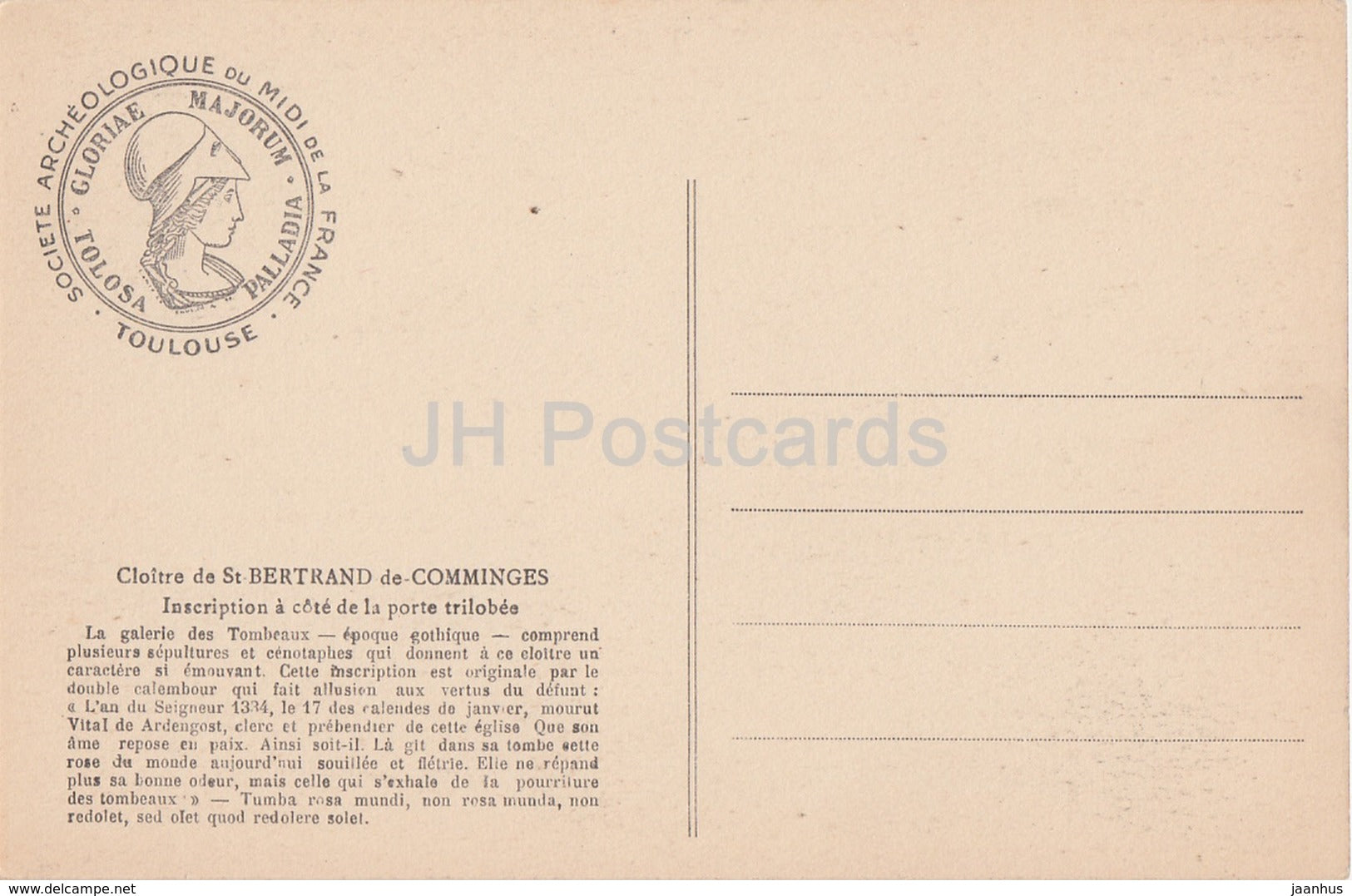 Cloitre de St Bernard de Comminges - Inscription a cote de la porte trilobee - old postcard - France - unused