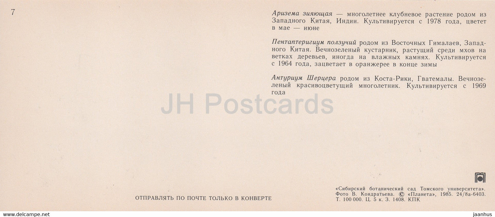 Cobra Lily - Himalayan Lantern - Flamingo flower - Siberian Botanical Garden - 1985 - Russia USSR - unused