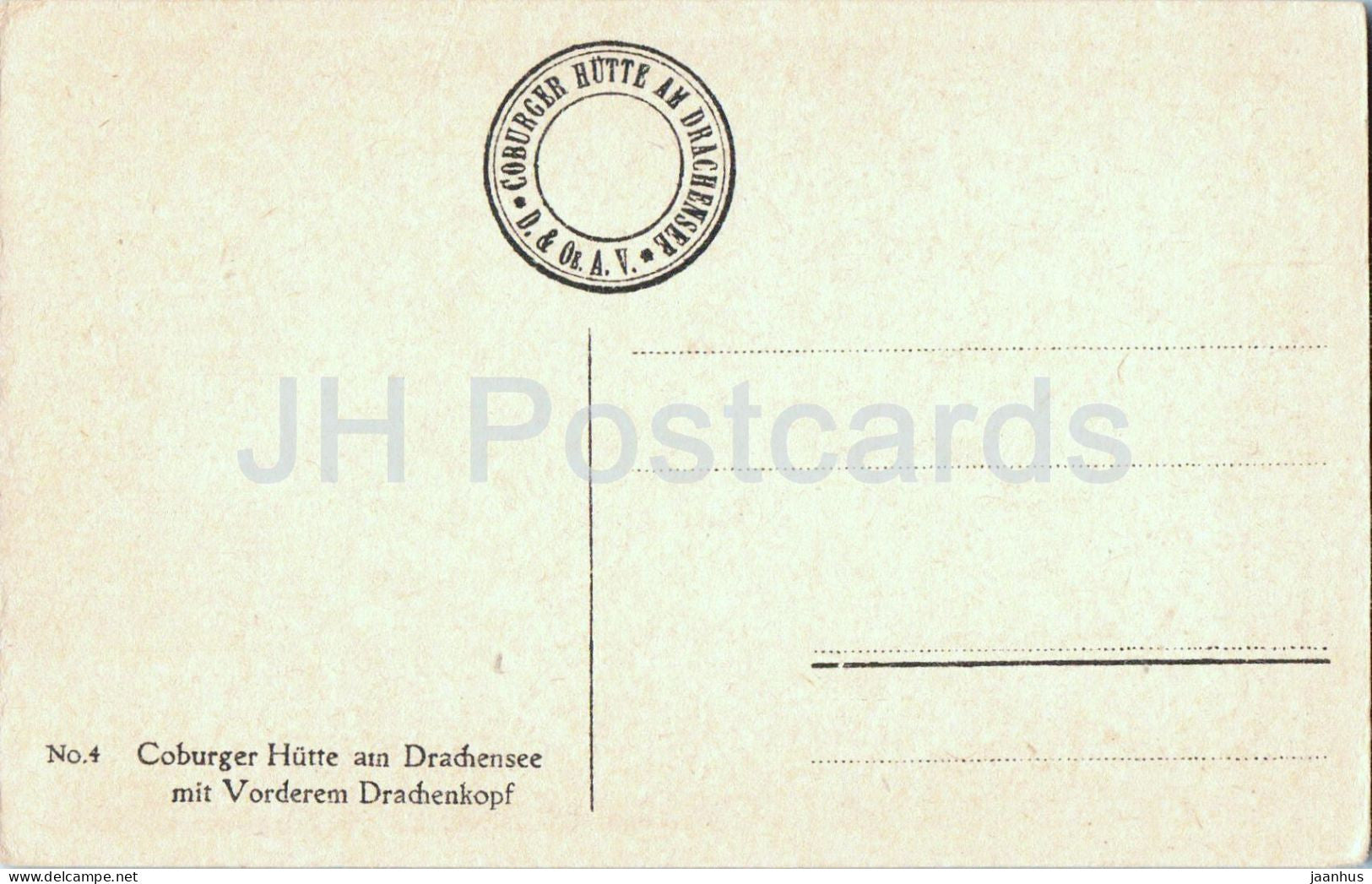 Coburger Hutte am Drachensee mit Vorderem Drachenkopf - No. 4 - old postcard - Austria - unused