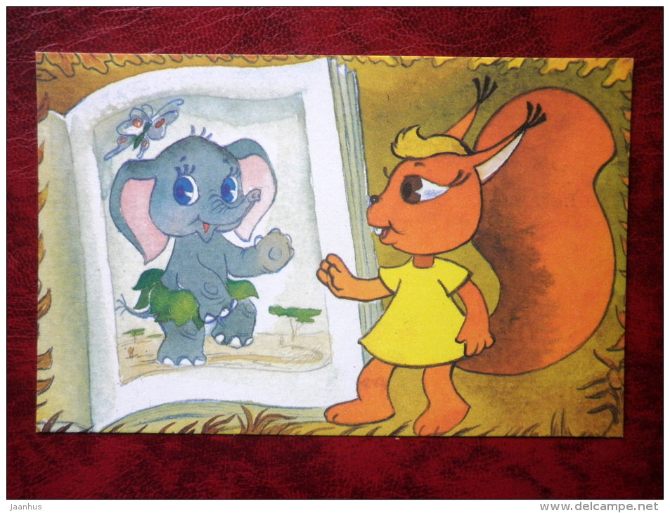 Come and Visit by L. L. Kayukov, cartoon cards - hare - elephant - book - 1988 - Russia - USSR - unused