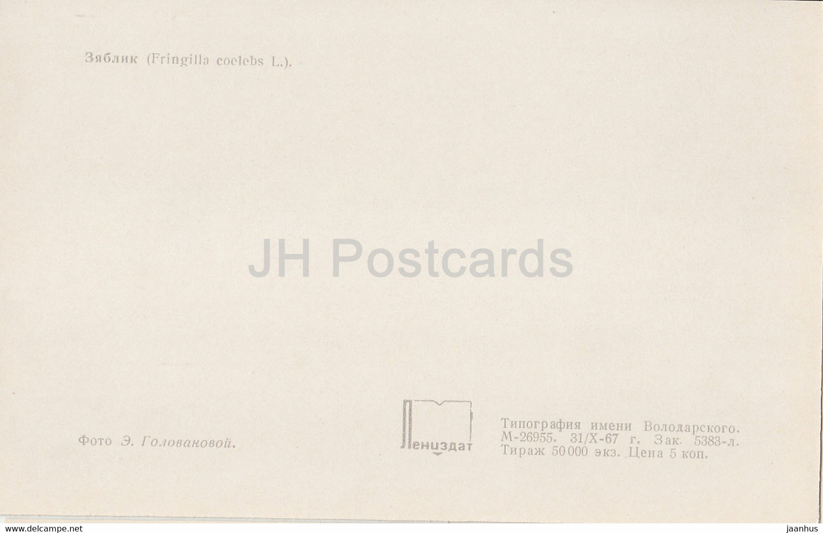 Common chaffinch - Fringilla coelebs - birds - 1968 - Russia USSR - unused