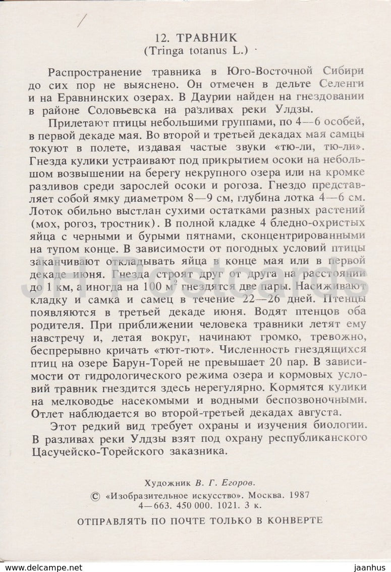Common redshank - Tringa totanus - birds - 1987 - Russia USSR - unused