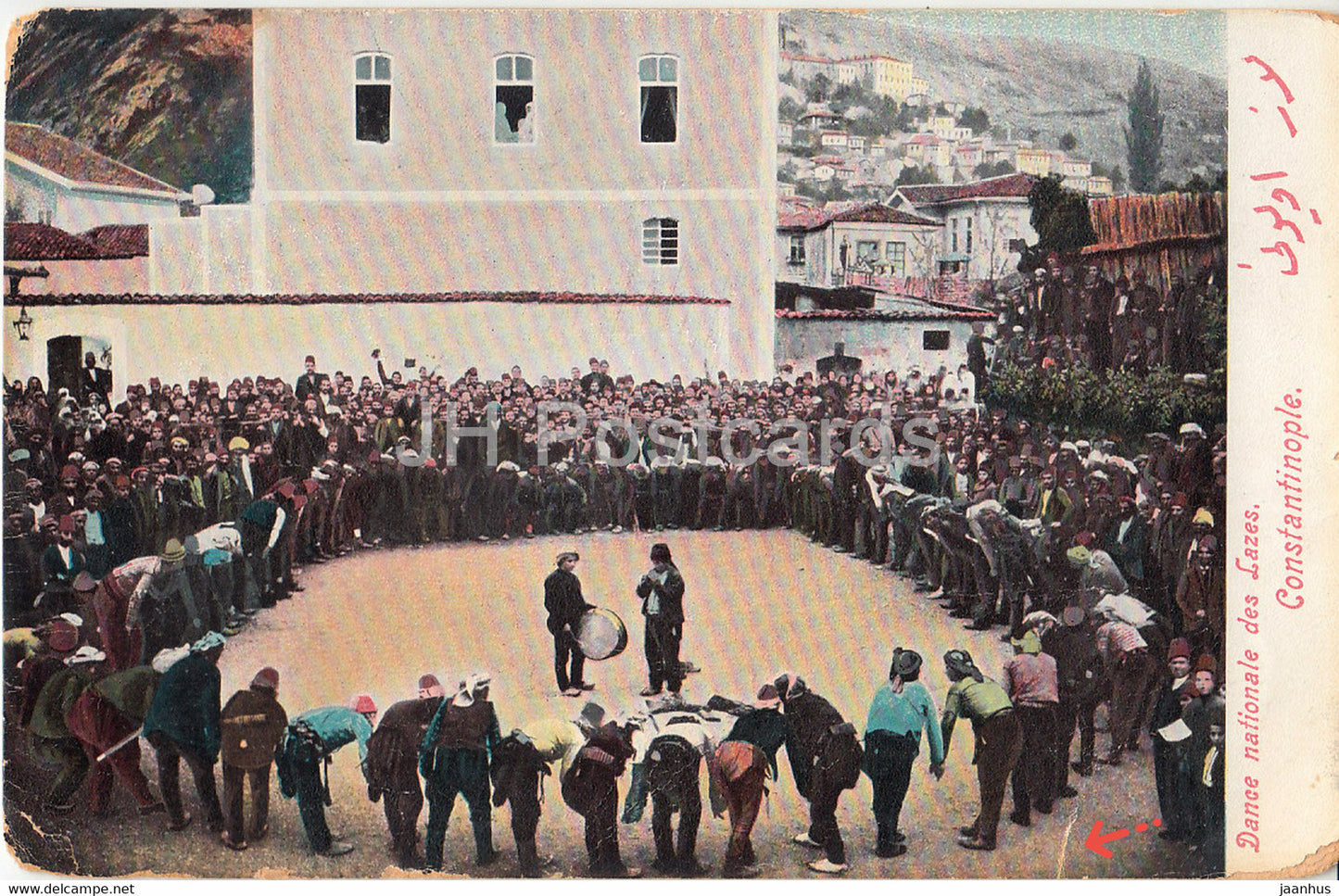 Constantinople - Dance Nationale des Lazes - Folk Dance - old postcard - 1909 - Turkey - used
