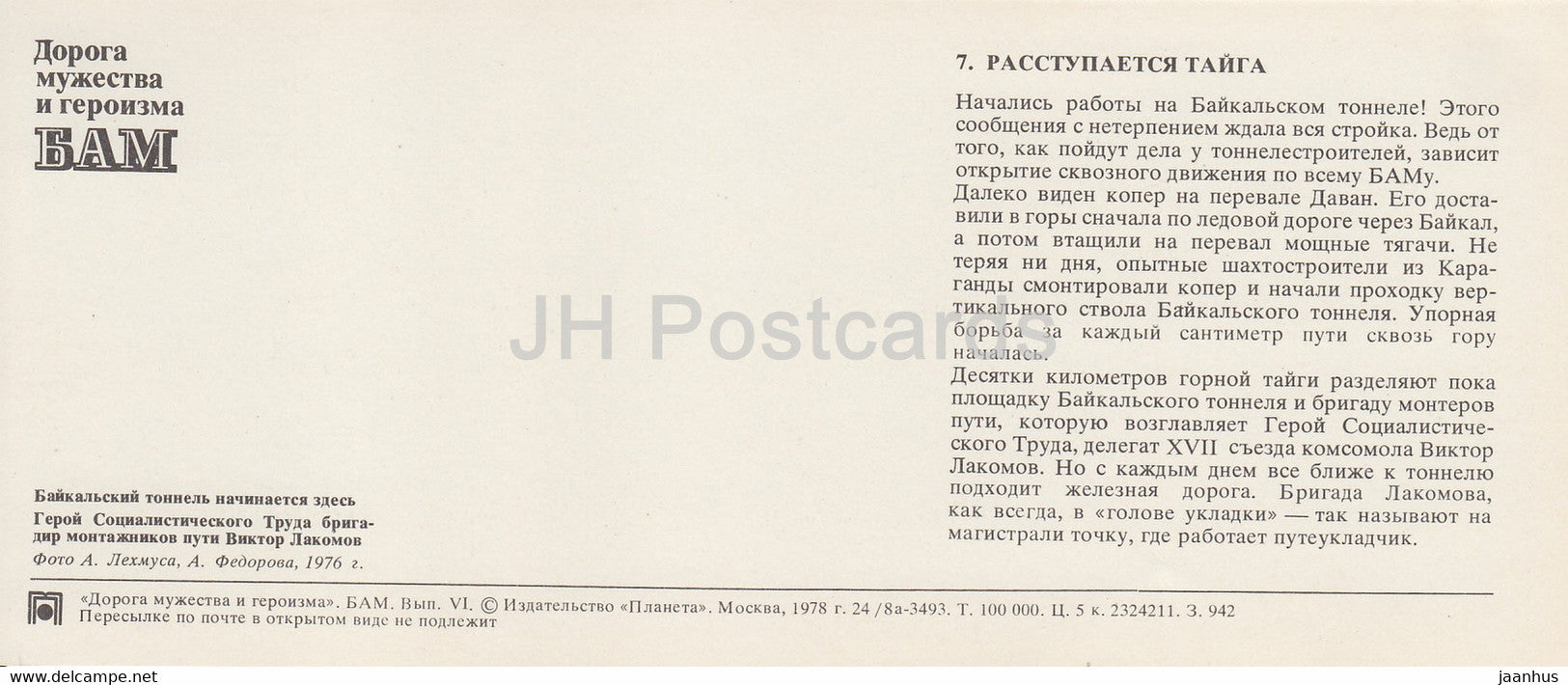 construction - 1 - BAM - Baikal-Amur Mainline , construction of the railway - 1978 - Russia USSR - unused