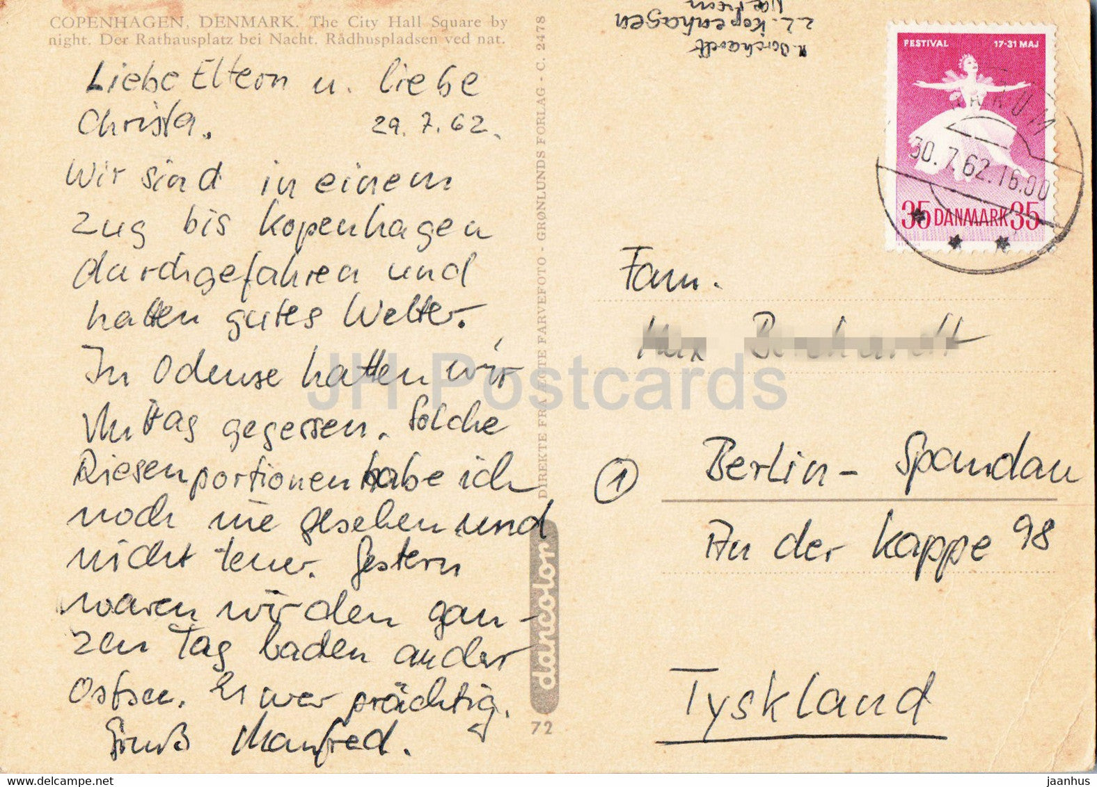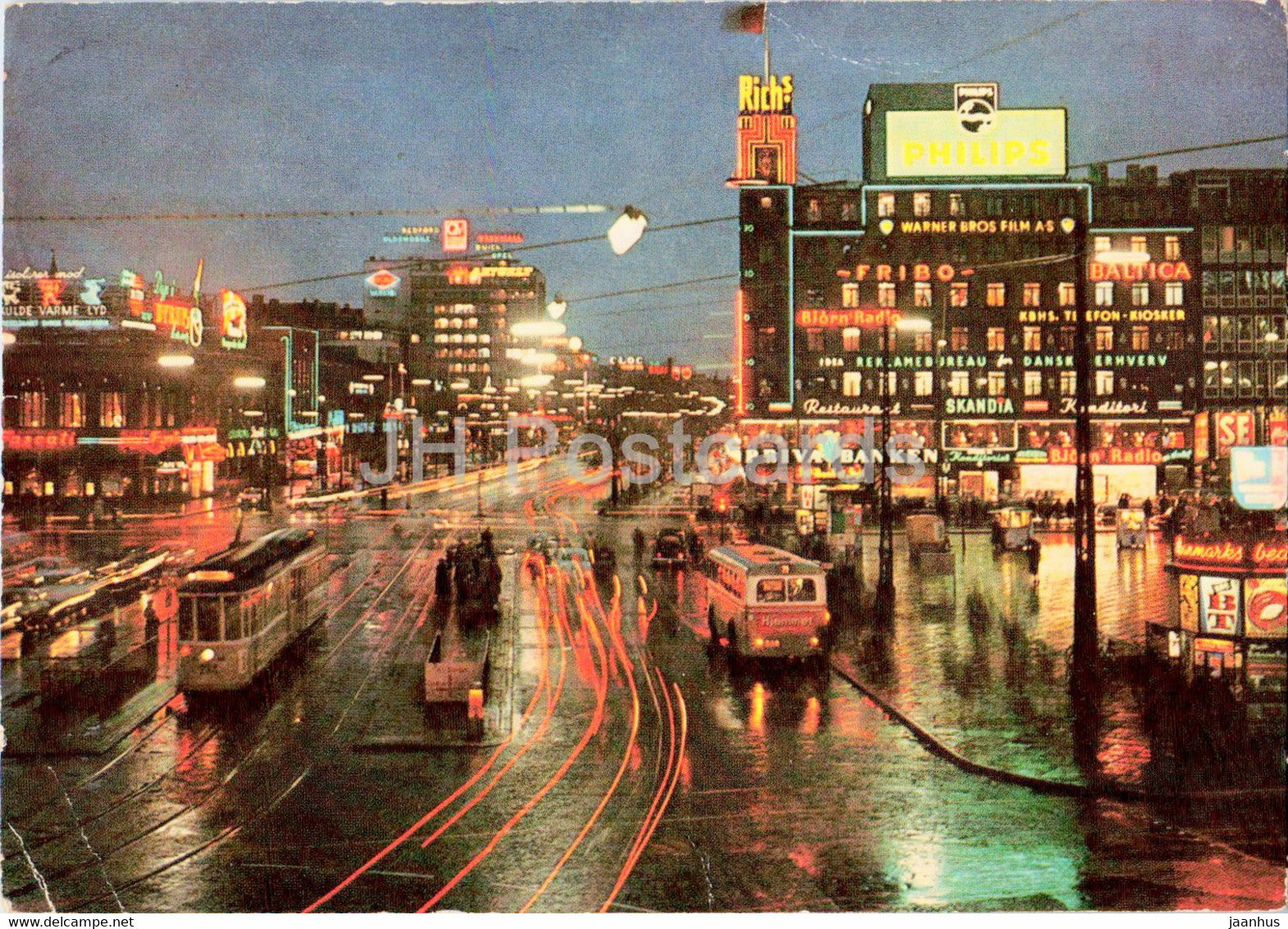 Copenhagen - The City Hall Square by Night - bus - tram - 1962 - Denmark - used