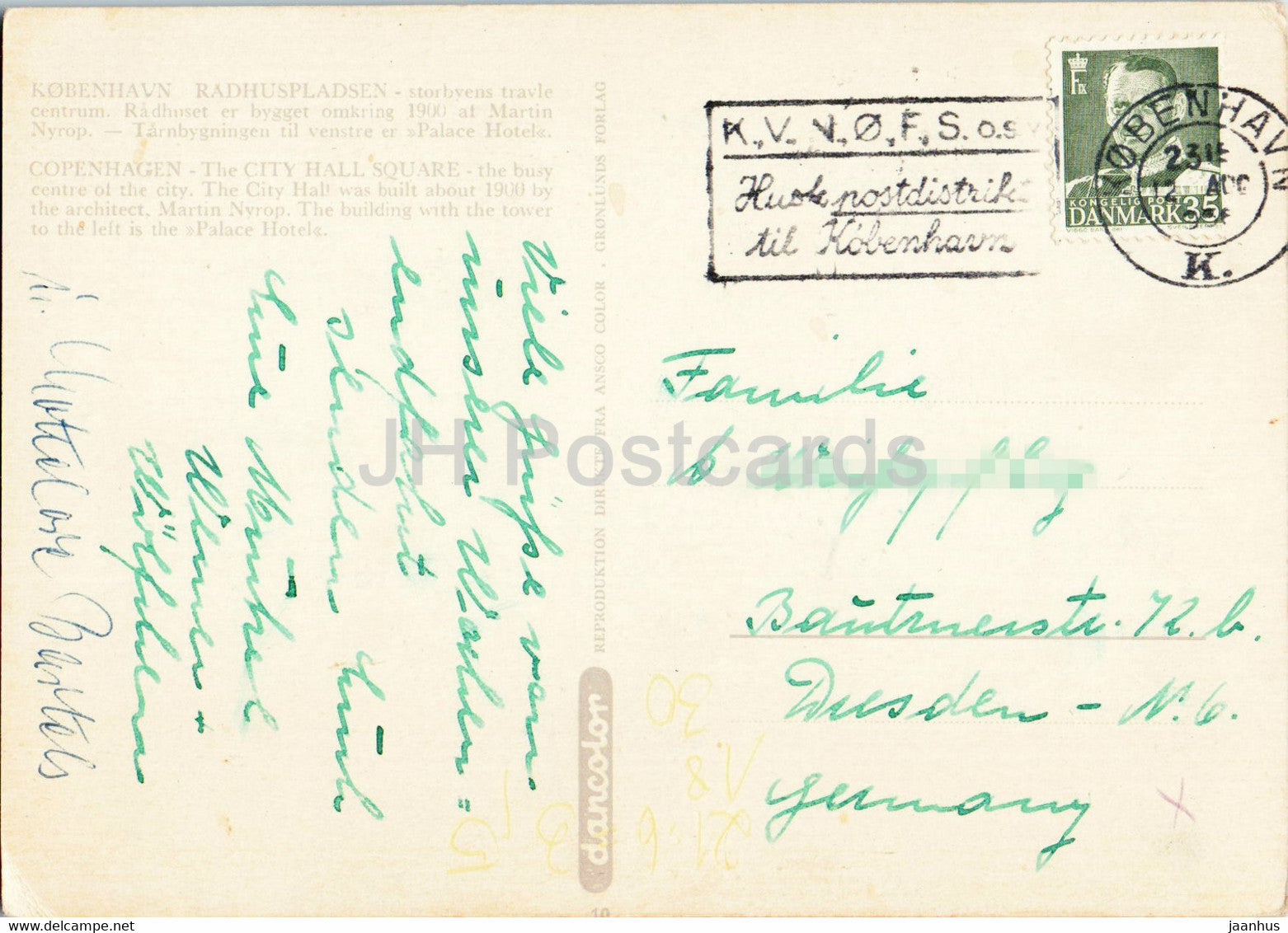 Copenhagen - The City Hall Square - tram - old postcard - Denmark - used