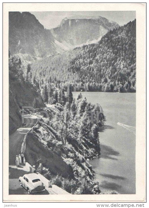 cornice highway - Pshegishva mountain - car Pobeda - Lake Ritsa - Abkhazia - Caucasus - 1955 - Georgia USSR - unused