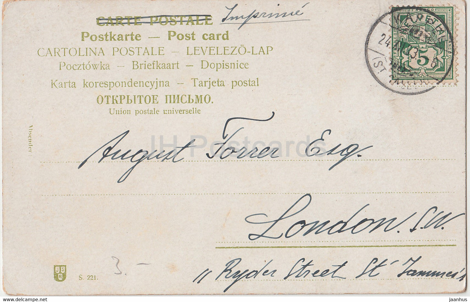 couple - woman and man - folk costumes - J S M S 221 - old postcard - 1903 - used