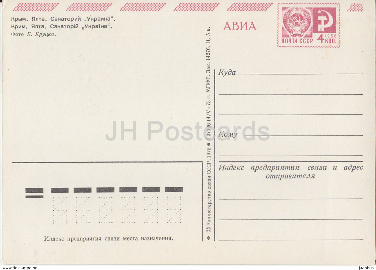 Crimea - Yalta - sanatorium Ukraina - AVIA - postal stationery - 1975 - Ukraine USSR - unused