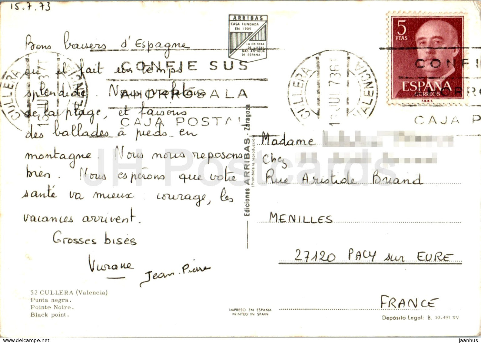 Cullera - Valencia - Punta Negra - Black Point - 52 - 1973 - Spain - used
