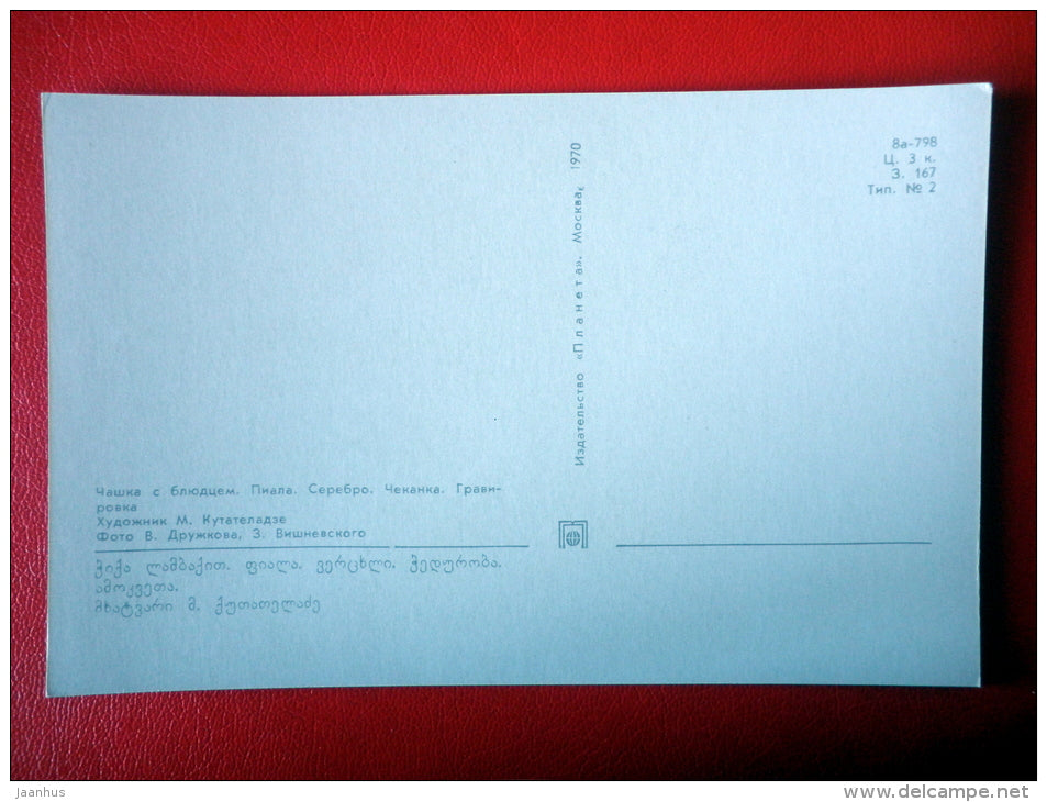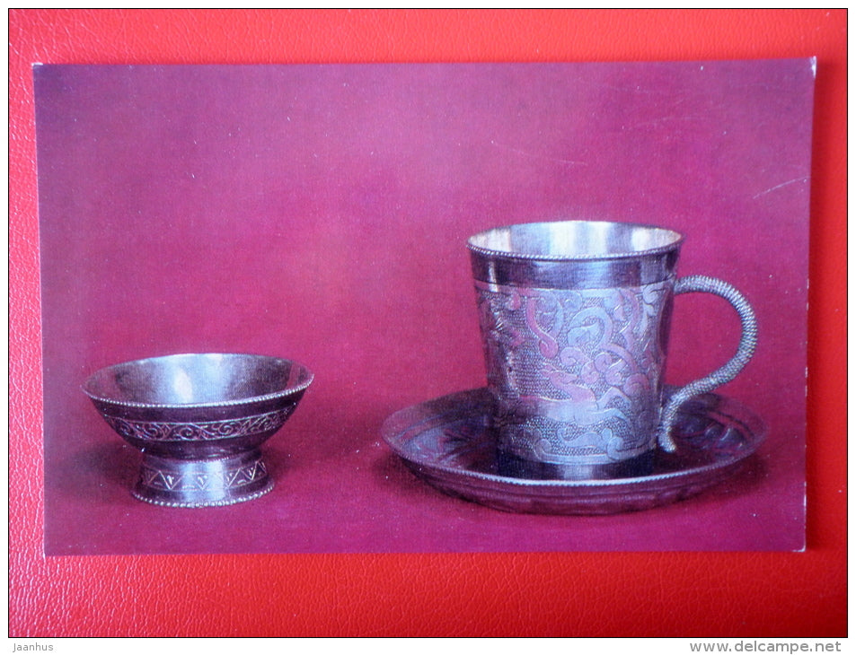 Cup and Saucer , silver - Georgian Chasing - 1970 - Russia USSR - unused