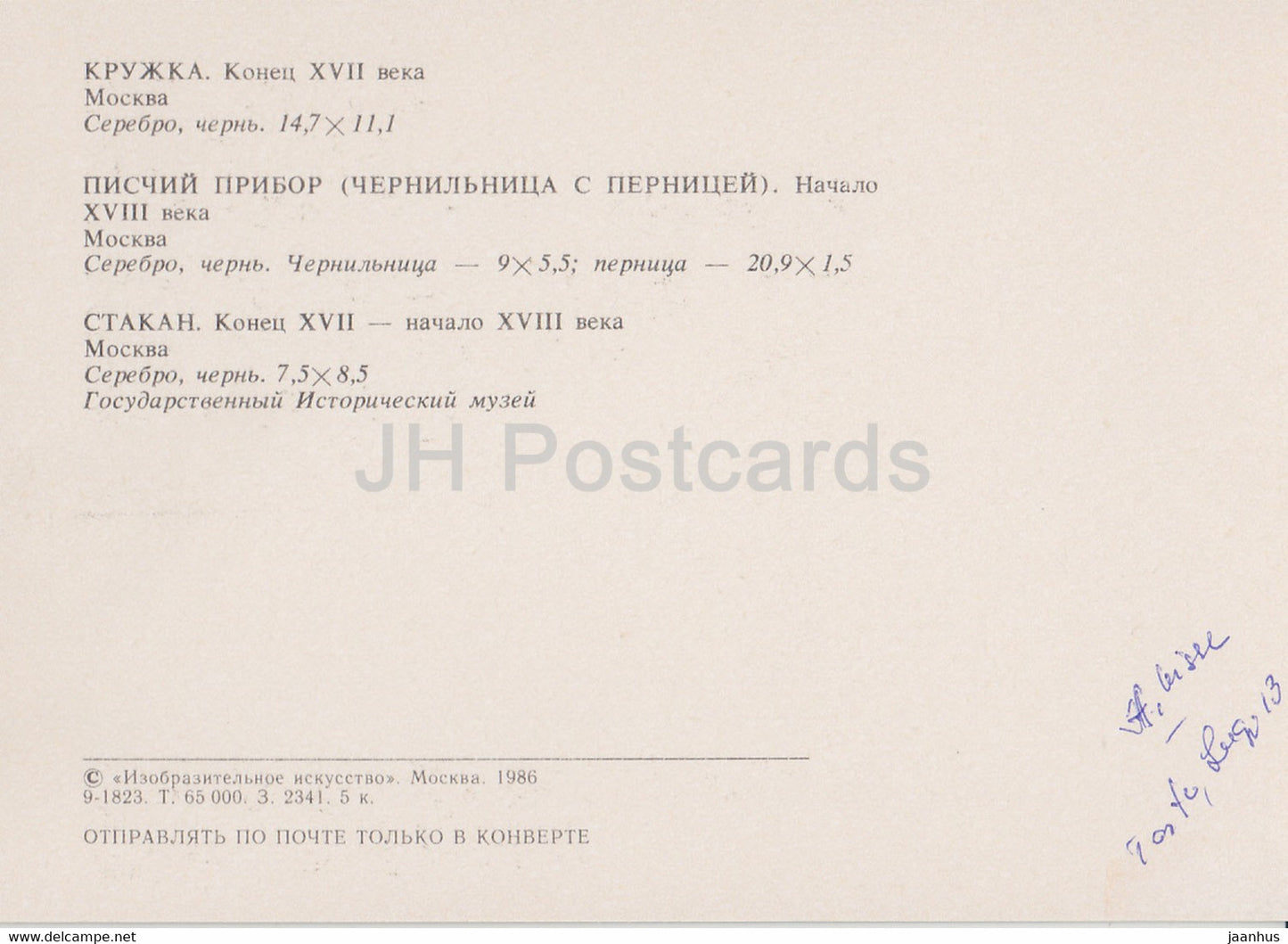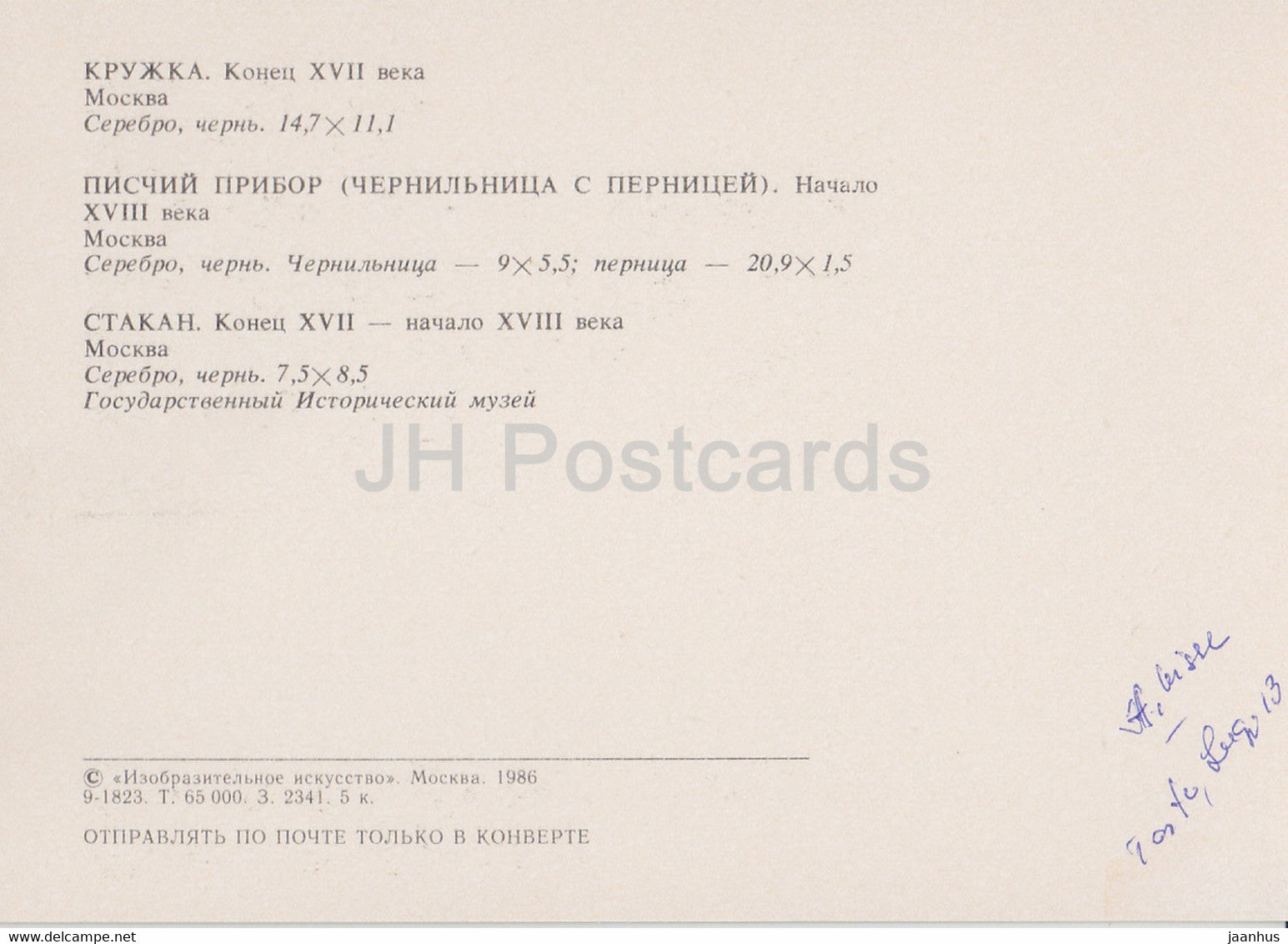 Cup , Writing Set , inkwell - Glass - Russian Silver Craft - art - 1986 - Russia USSR - used