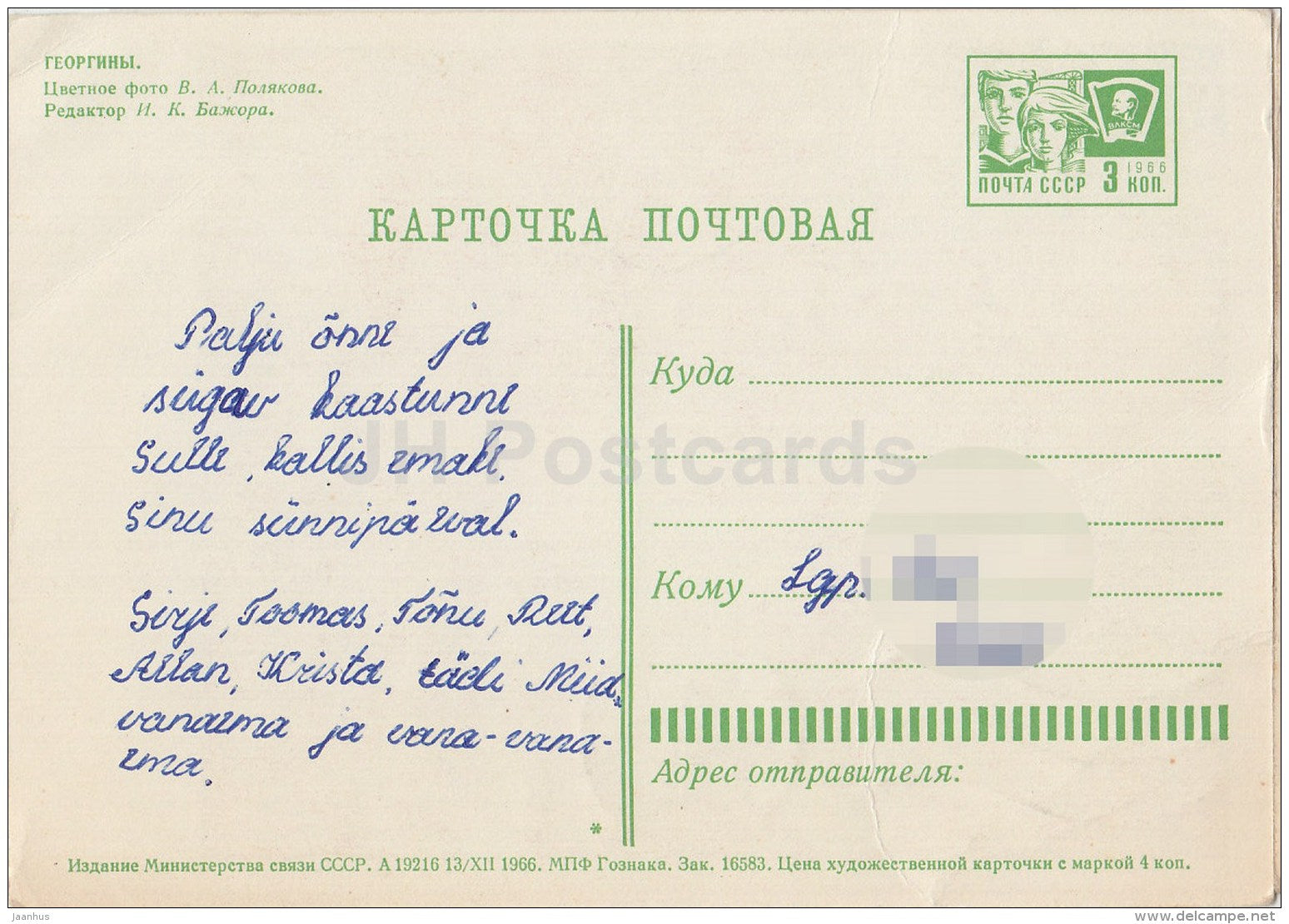 Dahlias - flowers - postal stationery - 1966 - Russia USSR - used