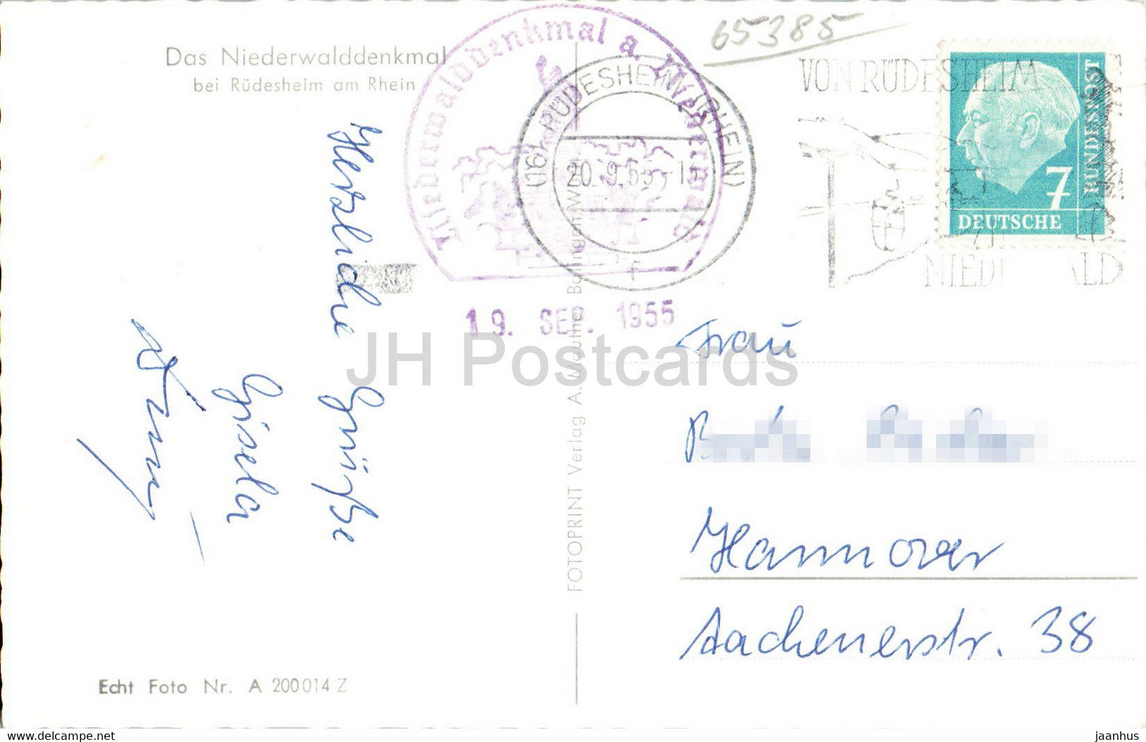 Das Niederwalddenkmal bei Rudesheim am Rhein - monument - old postcard - 1955 - Germany - used