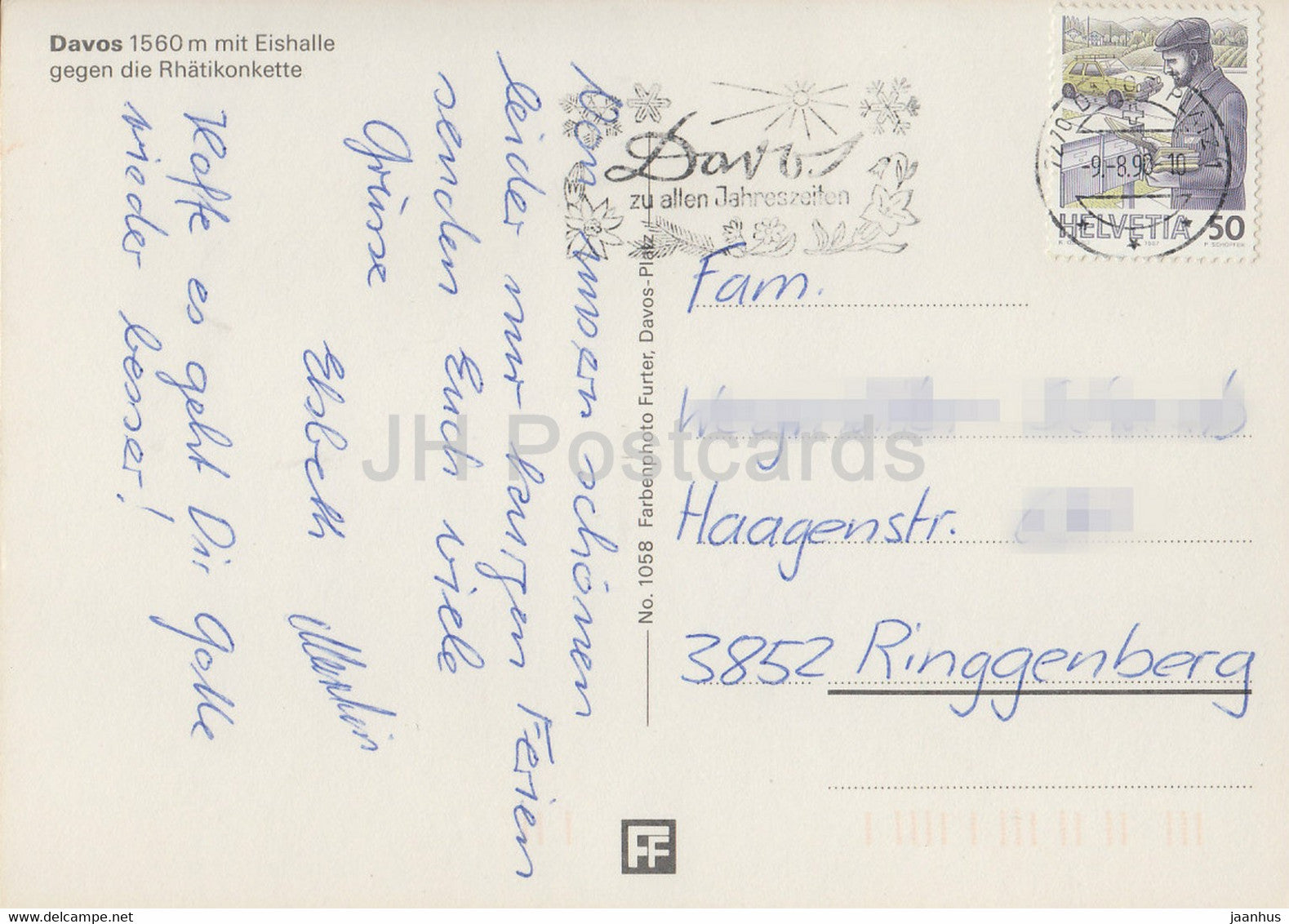 Davos 1560 m mit Eishalle gegen die Rhatikonkette - 1058 - 1990 - Switzerland - used