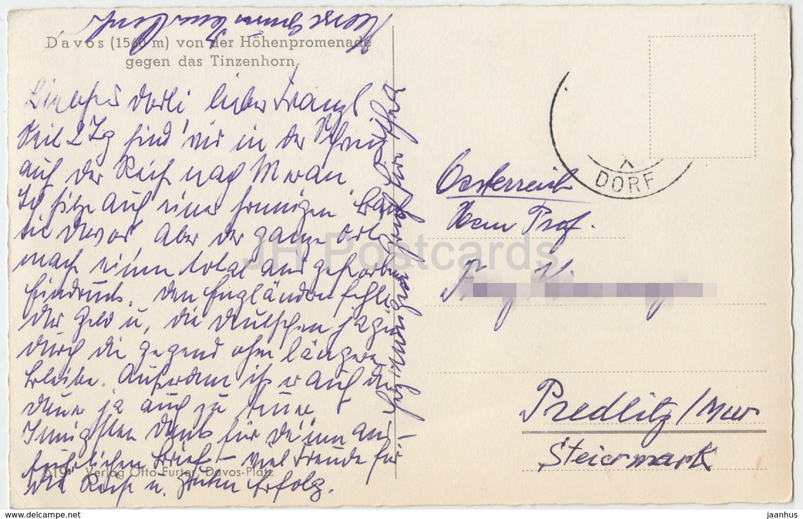 Davos 1560 m von der Hohenpromenade gegen das Tinzenhorn - Switzerland - old postcard - used